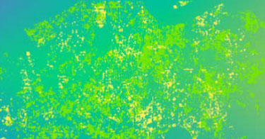 バイオフィルムの可能性がある箇所は黄色や緑色で発光します。