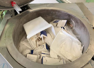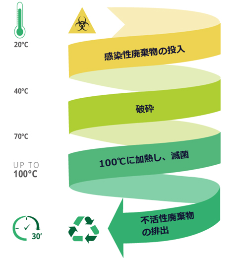 感染性医療廃棄物をたった30分で無害化。容積を80%、重量を25%削減します。