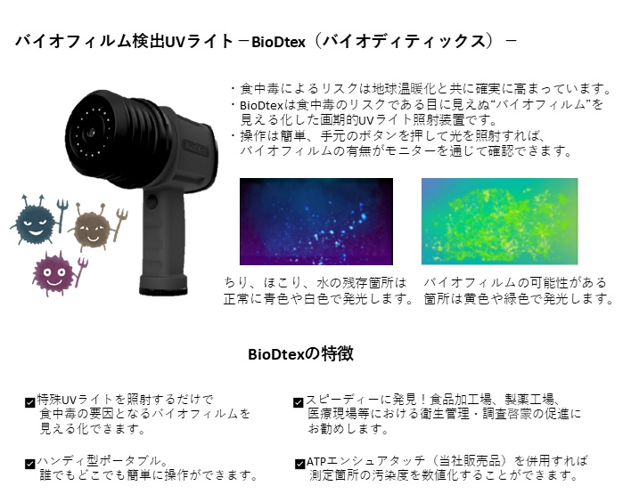 バイオフィルム検出UVライトーBioDtexーのご案内